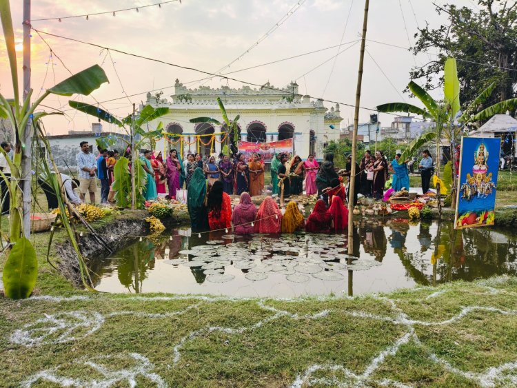 दरभंगा राजकिला स्थित हरि मंदिर परिसर में मिट्टी खोदकर बने घाट पर छठ मइया की आराधना जहाँ तालाब नहीं, वहाँ श्रद्धा ने रचा आस्था का समंदर! मोहल्ले के लोगों ने मिलकर बनाया भव्य घाट, दीपों और गीतों से गूंज उठा पूरा रामबाग, सूर्योपासना का यह दृश्य बना भक्ति, एकता और परंपरा का जीवंत प्रतीक!